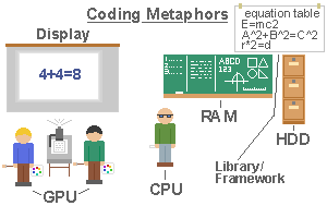 * Computer component functions, metaphors, simplifications, programable machines in general